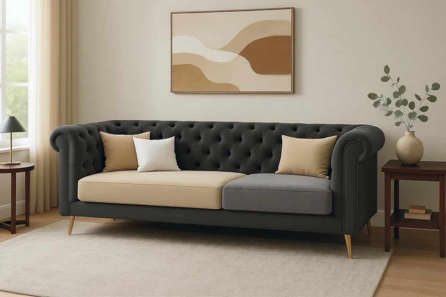 Classic Multicolor 3 Seater Velvet Fabric Sofa with Pillow Sofa Best for Elders for Living Room & Bedroom & Office