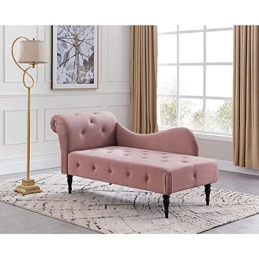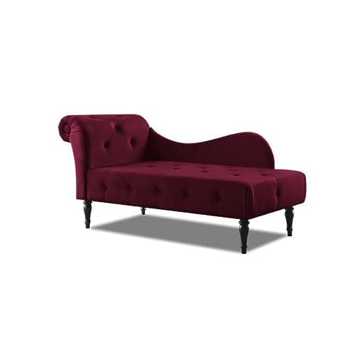 Velvet Fabric Rosewood Button Tufted Chaise Lounge Couch for Living Room Bedroom Office Furniture