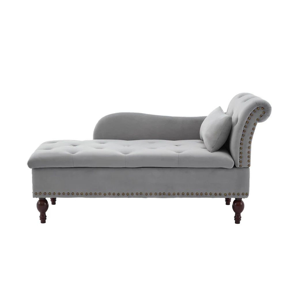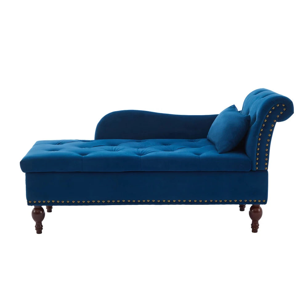 Rosewood Velvet Fabric 2 Seater Storage Modern Chaise Lounge Couch With Tufted Button Back with Pillow For Living room, Office, Garden