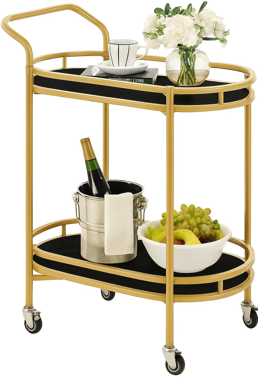 Iron Frame Kitchen Serving Trolley Table with 2 Marble Shelf Serving Trolley Table for Bar, kitchen, Tea Coffee Cart for Home