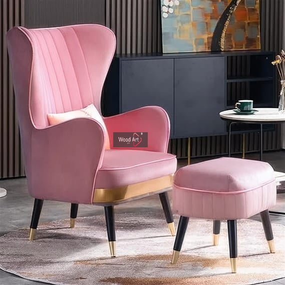 Luxury Wing Chair Velvet Armchair Royal Stylish Single Seater Chair Living Room , Bedroom