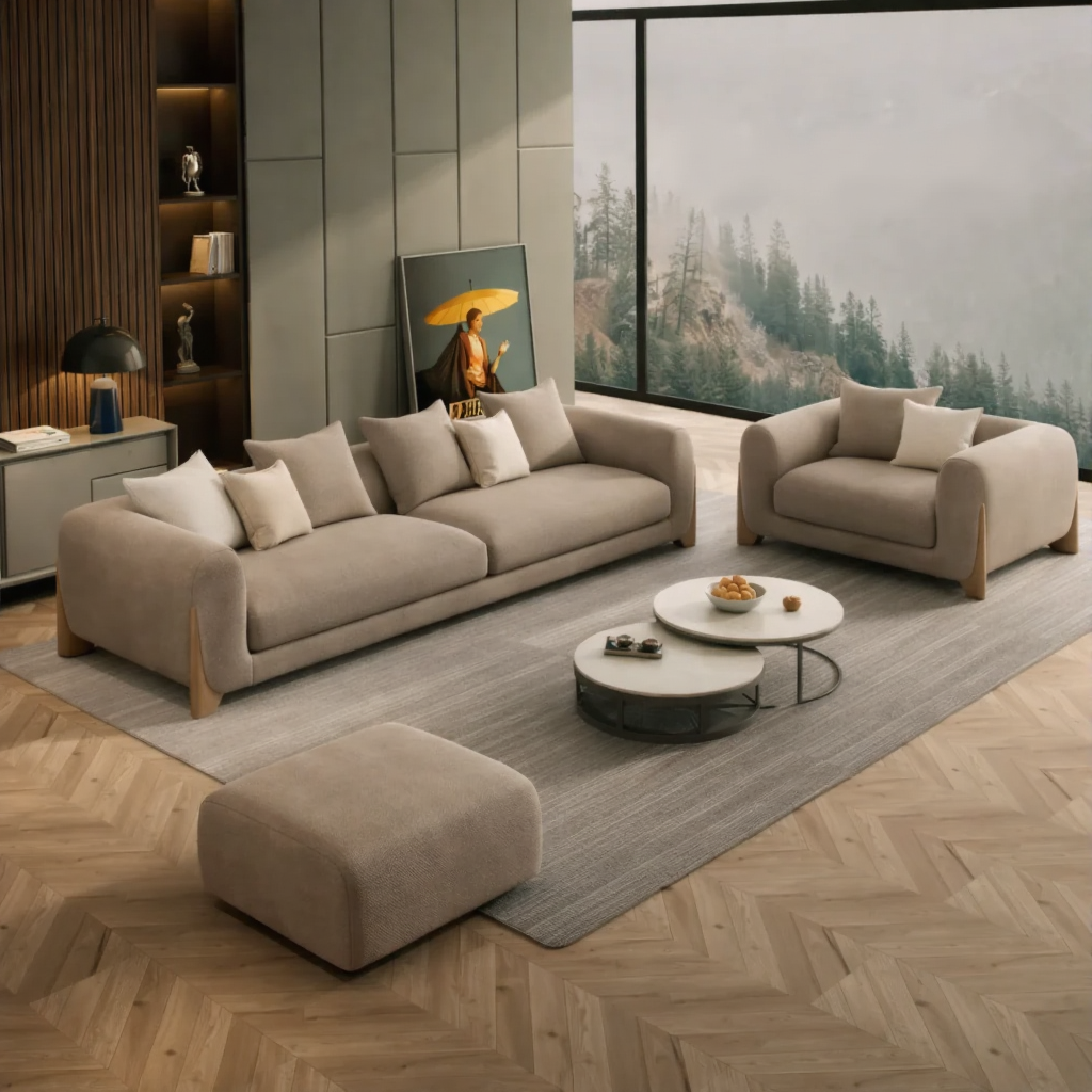 Luxury 4 Seater Sofa Set with Ottoman – Comfortable Living Room Seating