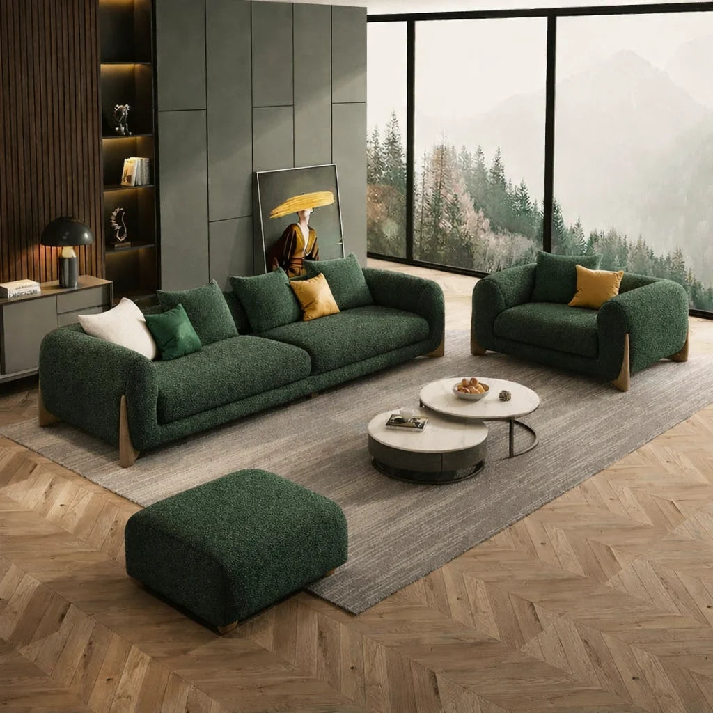 Available in a variety of designs, colors, and fabric options, these sofa sets for home effortlessly complement both contemporary and classic interiors. Easy to maintain and thoughtfully crafted, a 4 seater sofa set with ottoman is the ideal choice for families looking for comfort, style, and smart space utilization.